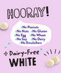 Our Vegan White Baking Chips are free from peanuts, tree nuts, gluten, wheat, soy, dairy, sesame, refined sugar, palm oil, and emulsifiers.